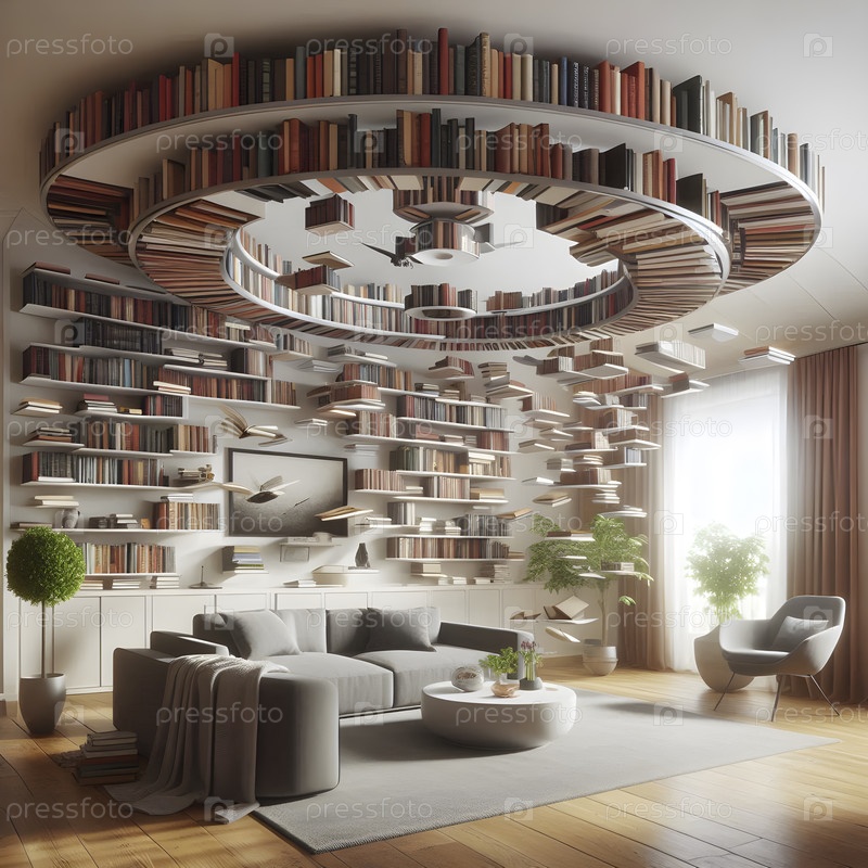 Домашняя библиотека с книгами, Ai created A image