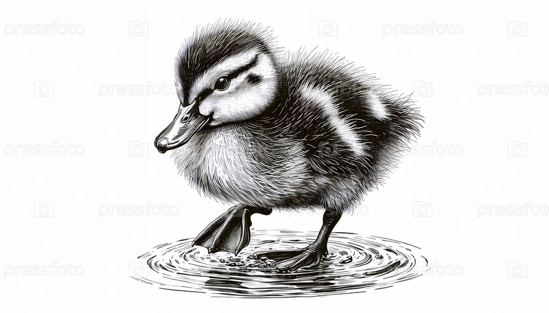 Плавучая утка чернила рисование художественная печать, Ai generated image