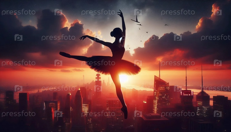 Танцовщица-пойнт на крыше при закате, Ai generated image