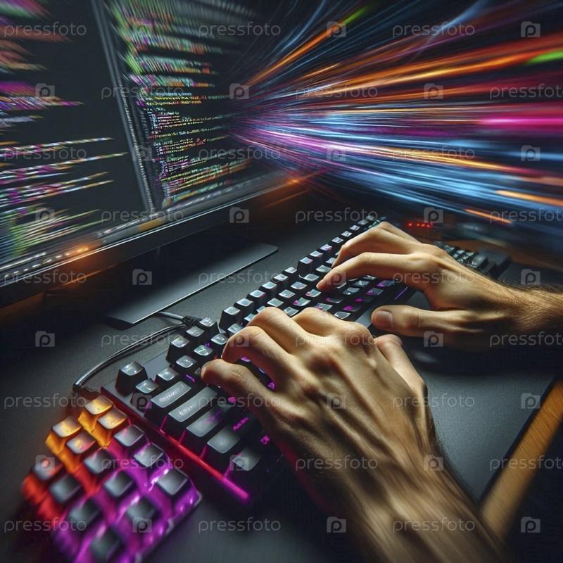 Опытные разработчики эффективно программируют на механической клавиатуре с помощью яркой, красочной макроклавиатуры Ai generated image