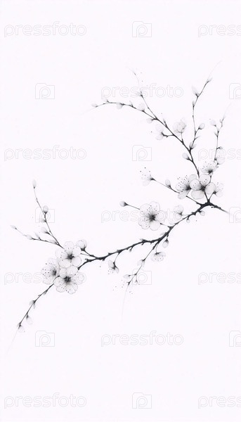 Пара вишневых цветов чернила рисование художественная печать, Ай создал изображение A