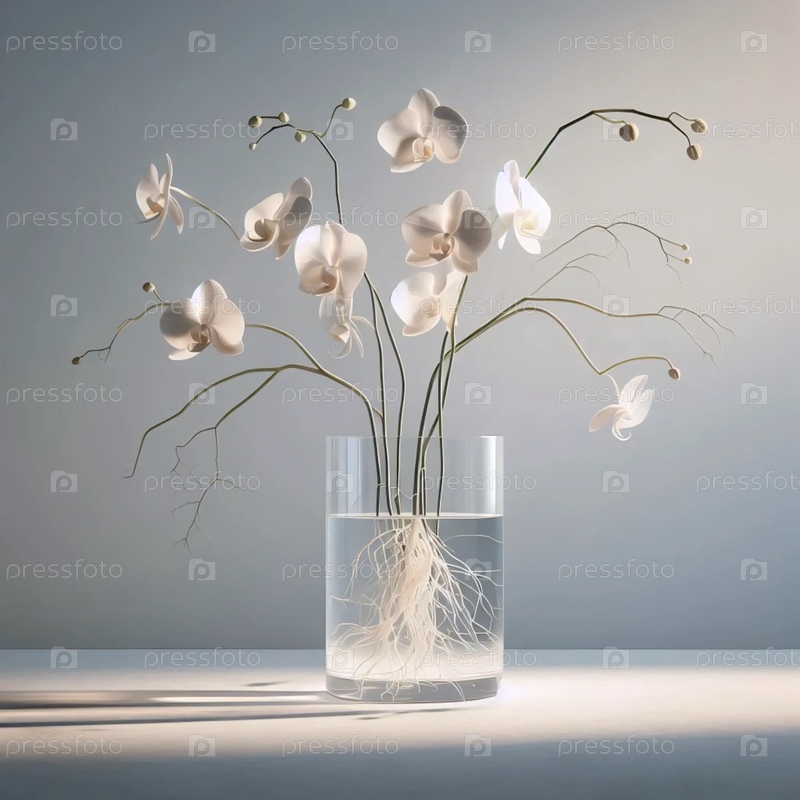 Композиция орхидей в стеклянной вазе, Ai generated image