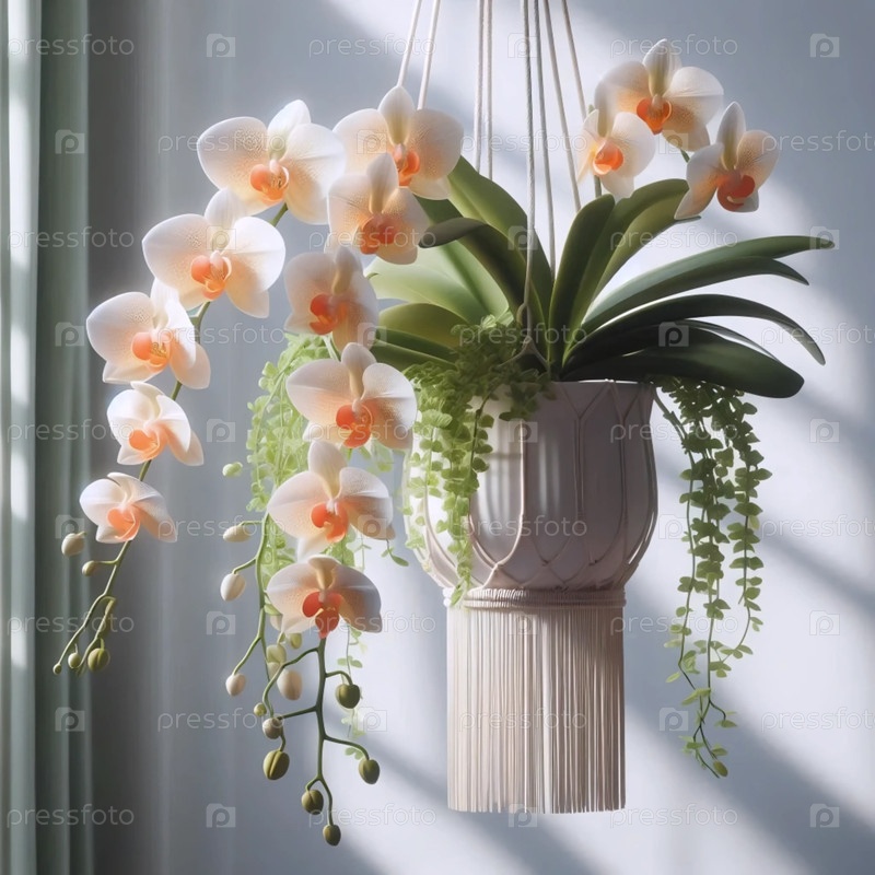 Орхидея в висящем плантаторе, Ai generated image