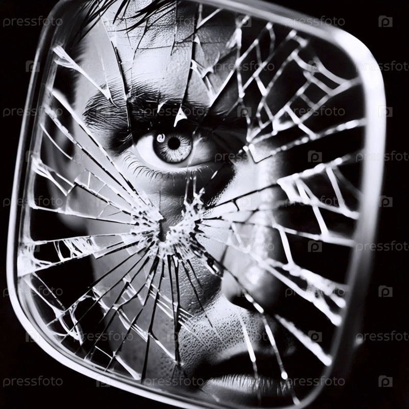 Глядя через треснувшее боковое зеркало, Ай создал изображение
