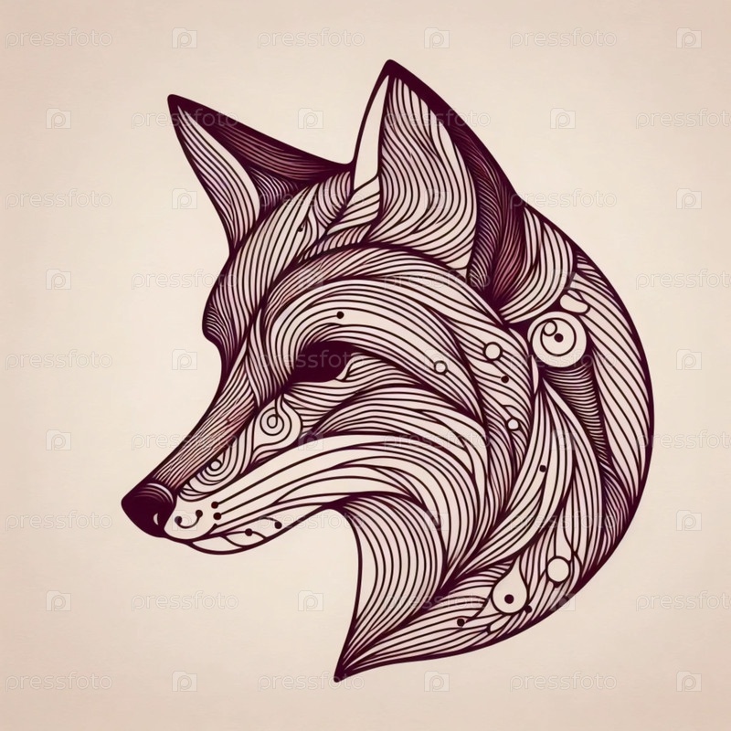 Стилизованный портрет линейного искусства лисы, Ai generated image