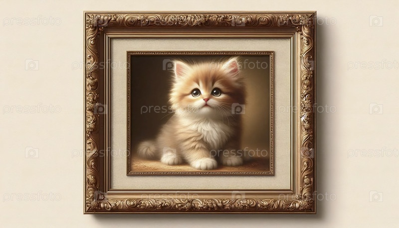 Миниатюрная масляная живопись Милая кошка в золотой раме, A Ai generated image