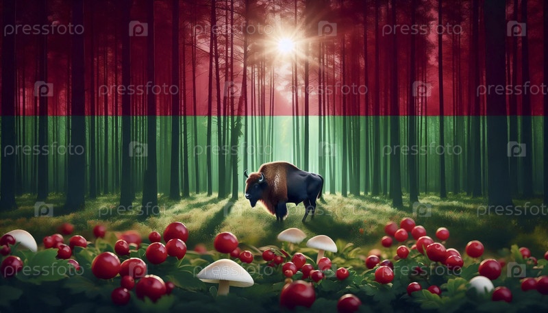 Белорусский флаг в заповеднике первобытных лесов и зубов, Ai generated image