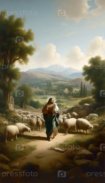 "Добрый пастух" как классическая пастырская сцена, Ai generated image