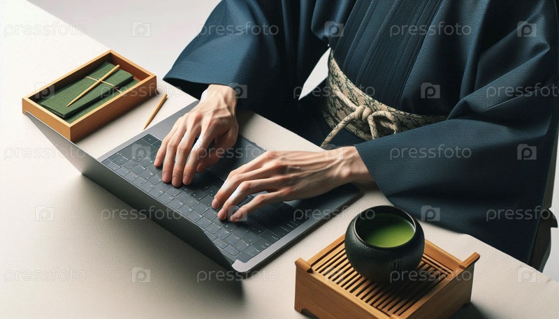 Руки, печатающие на клавиатуре в творческой атмосфере рабочего пространства, Ai generated image