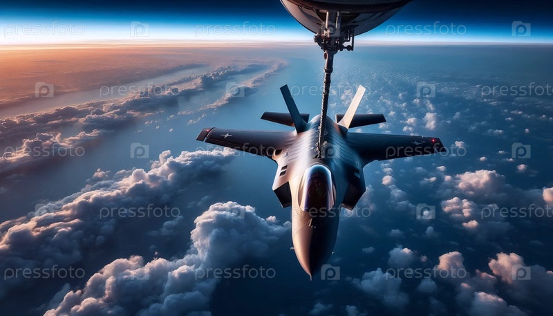 Истребитель заправляется в воздухе из танкера, Ai generated image