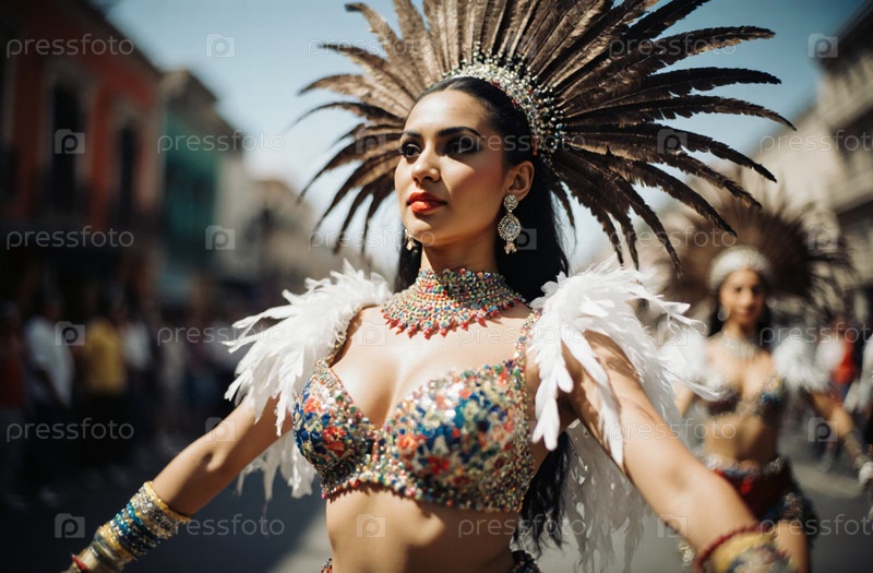 Живое празднование мексиканской культуры с карнавальным танцором в ослепительном наряде под ярким солнцем генеративный AI