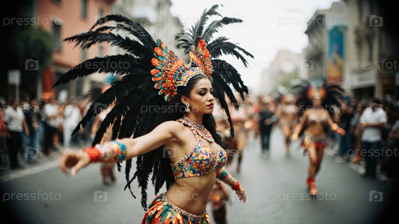 Яркая танцовщица карнавала захватывает толпу в красочном праздновании на яркой улице во время оживленного мексиканского фестиваля