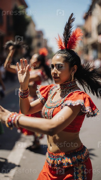 Танцы с радостью в ярких цветах во время оживленного празднования мексиканского карнавала, наполненного музыкой и традициями под ярким солнцем