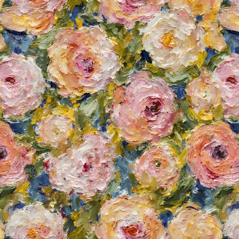 Живая масляная живопись цветущих цветов, покрывающих стену в оживленной садовой обстановке, демонстрируя мягкие оттенки и богатые текстуры, которые привлекают внимание генеративный ИИ