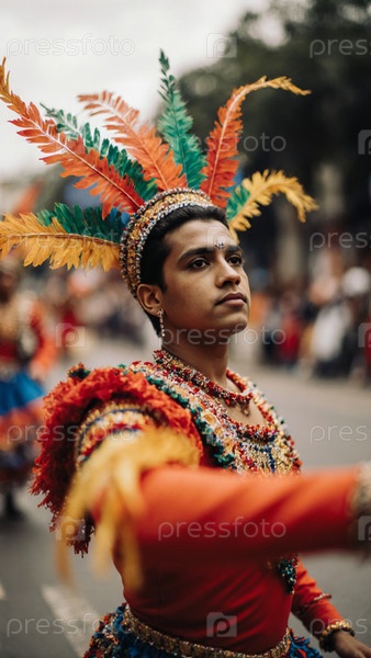 Живое празднование мексиканского карнавального танца с красочными костюмами и оживленными движениями, заполняющими улицы во время праздничного мероприятия