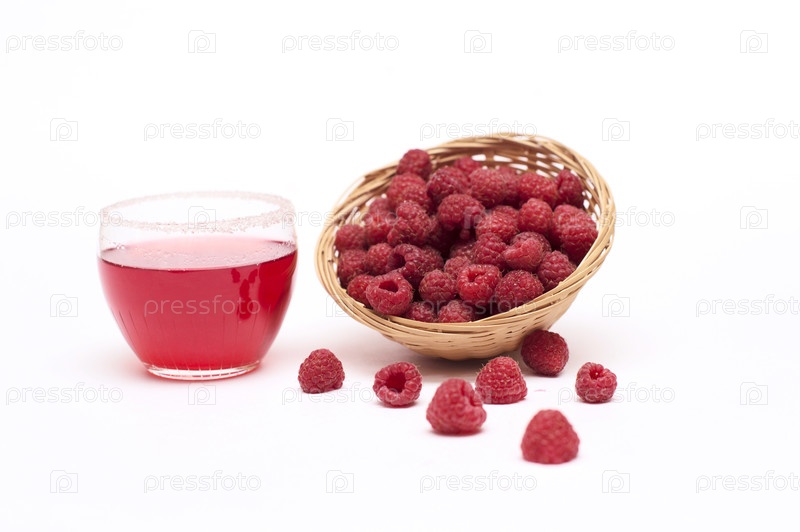 Корзинка с малиной и малиновый сок