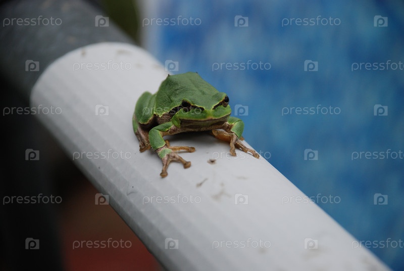 Зеленая лягушка сидит на краю бассейна