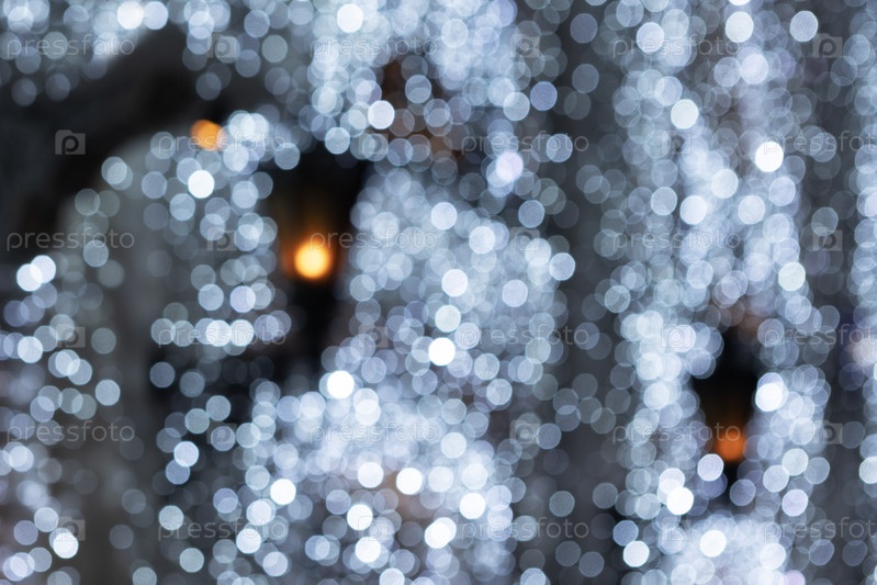 Праздничные гирлянды с горящими лампочками перед зданием ночью. новогоднее украшение. концепция праздника. нефокусность. эффект боке