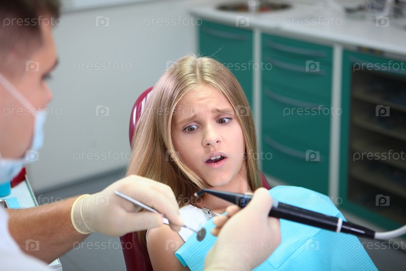 Девушка-подросток испугалась на свидании с стоматологом. Страшная девочка у стоматолога. Страх в глазах. Фото из интерьера кабинета врача. Концепция профилактики и лечения зубов