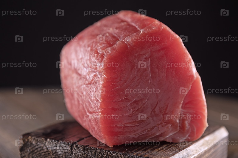 Большой кусок сырого красного тунца. Наполнение с сырым туном. Филе свежего туна. Большой кусочек сырой рыбной бифштекса для суши и сашими. Бифштекс с сырым туновым филе, свежее рыбное филе для японской кухни. Естественные омега