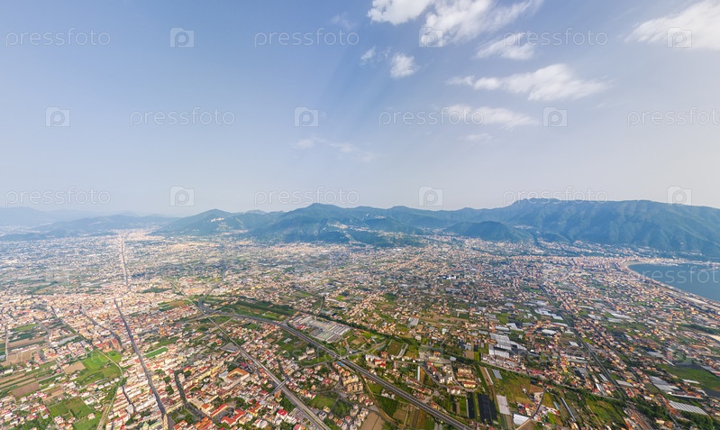 Помпеи, Неаполь, Италия. Современный город. Летом, днем. Вид с воздуха