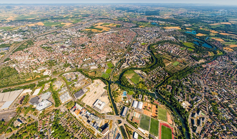 Страсбург, Франция.Панорама города в летний день.Солнечная погода.Вид с воздуха