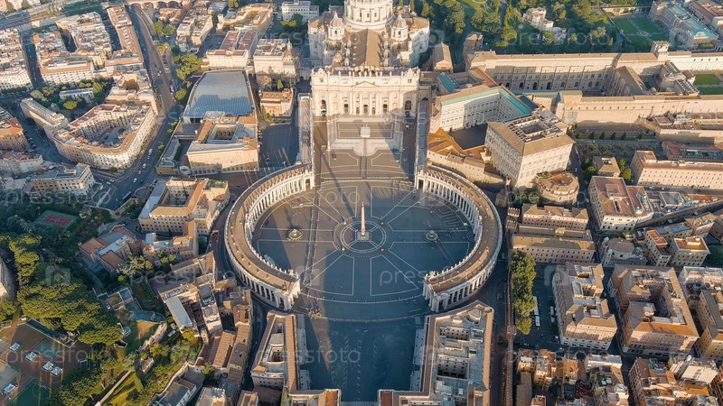 Рим, Италия. Вид на Ватикан. Базилика Сан-Пьетро, Пьяцца Сан-Пьетро. Полет над городом. Утренние часы, Aerial View