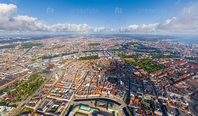 Копенгаген, Дания Панорама города летом Солнечная погода с облаками Вид с воздуха