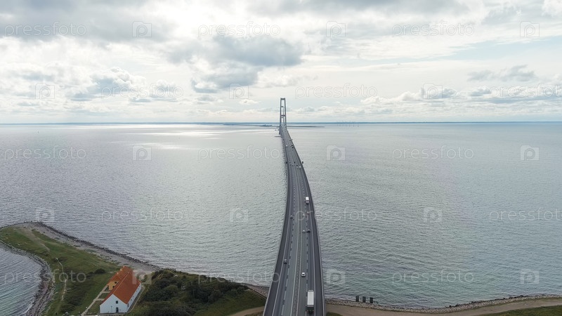 Корсер, Дания.Мост Большого пояса (Storebålt).Облачная погода с пробелами, Aerial View