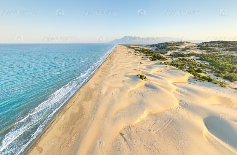 Гармония природных элементов на пляже Патара, песок, море и небо в идеальном балансе летом утром