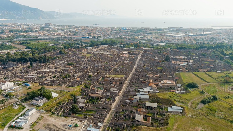 Помпеи - крупный древнеримский город, в настоящее время крупномасштабный археологический комплекс.Общий вид сверху, Aerial View Pompeii