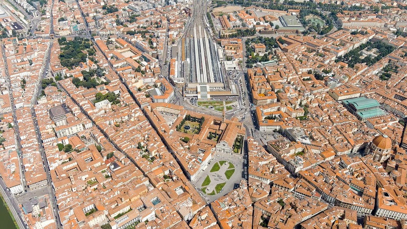 Флоренция, Италия Центральный железнодорожный вокзал (Stazione Ferroviaria Firenze Santa Maria Novella) Панорамный вид на город Летом, Aerial View