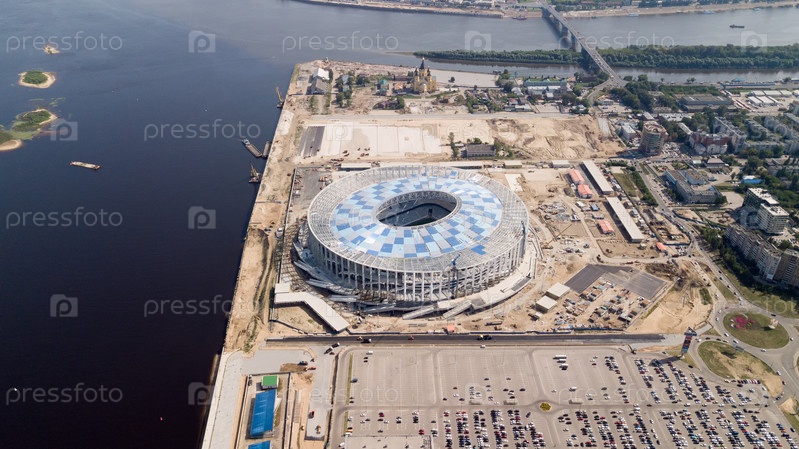 "Россия, Нижний Новгород - 21 августа 2017 года: Вид на стадион Нижнего Новгорода, здание Чемпионата мира по футболу 2018 в России"