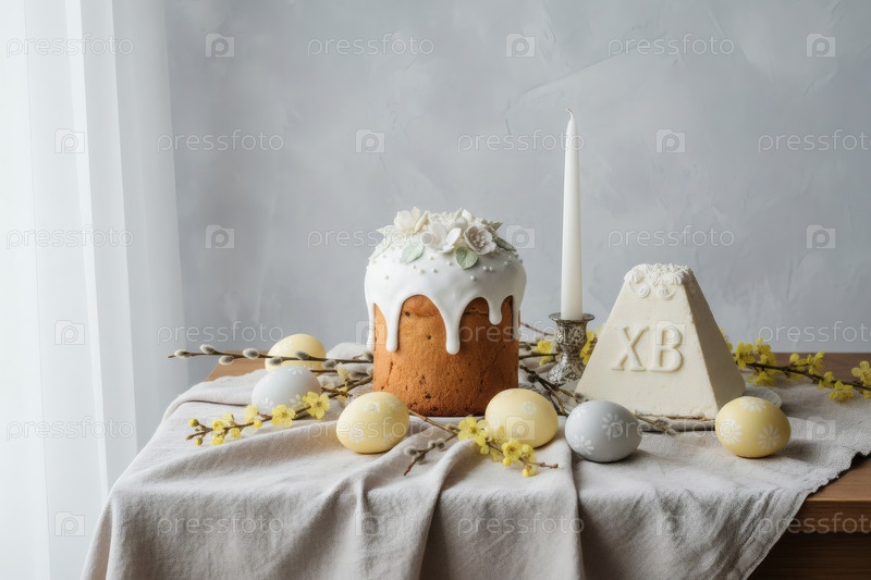 Пасхальные яйца, пасхальный торт, верба, кофейный сыр Пасха и фон сакуры с грубыми штрихами.Концепция счастливой Пасхи 2026