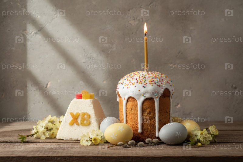 Пасхальные яйца, пасхальный торт, верба, кофейный сыр Пасха и фон сакуры с грубыми штрихами.Концепция счастливой Пасхи 2026