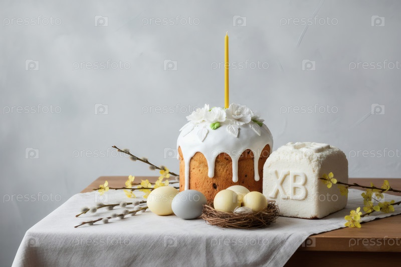 Пасхальные яйца, пасхальный торт, верба, кофейный сыр Пасха и фон сакуры с грубыми штрихами.Концепция счастливой Пасхи 2026