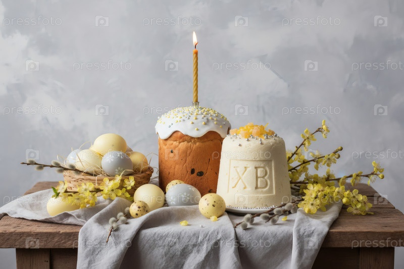 Пасхальные яйца, пасхальный торт, верба, кофейный сыр Пасха и фон сакуры с грубыми штрихами.Концепция счастливой Пасхи 2026