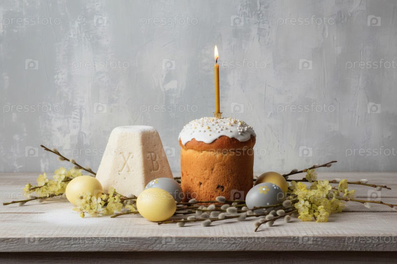 Пасхальные яйца, пасхальный торт, верба, кофейный сыр Пасха и фон сакуры с грубыми штрихами.Концепция счастливой Пасхи 2026