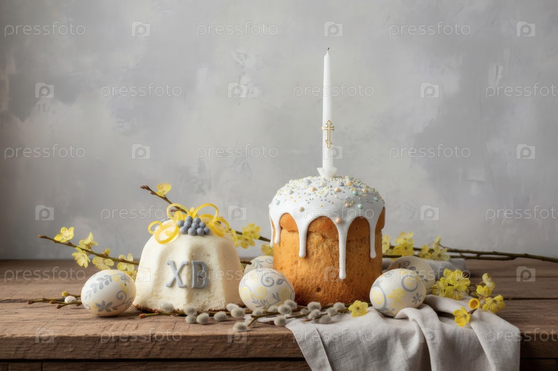 Пасхальные яйца, пасхальный торт, верба, кофейный сыр Пасха и фон сакуры с грубыми штрихами.Концепция счастливой Пасхи 2026
