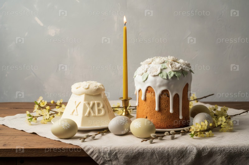 Пасхальные яйца, пасхальный торт, верба, кофейный сыр Пасха и фон сакуры с грубыми штрихами.Концепция счастливой Пасхи 2026