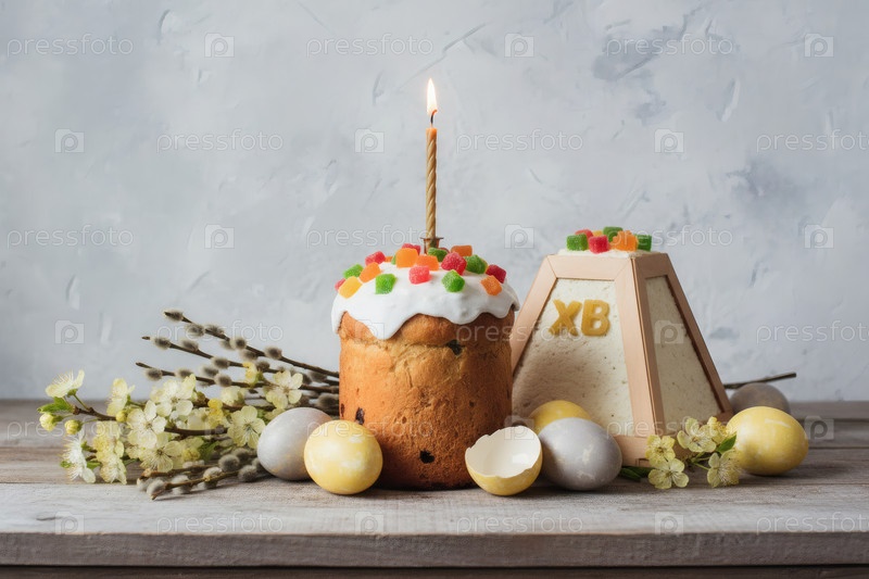 Пасхальные яйца, пасхальный торт, верба, кофейный сыр Пасха и фон сакуры с грубыми штрихами.Концепция счастливой Пасхи 2026