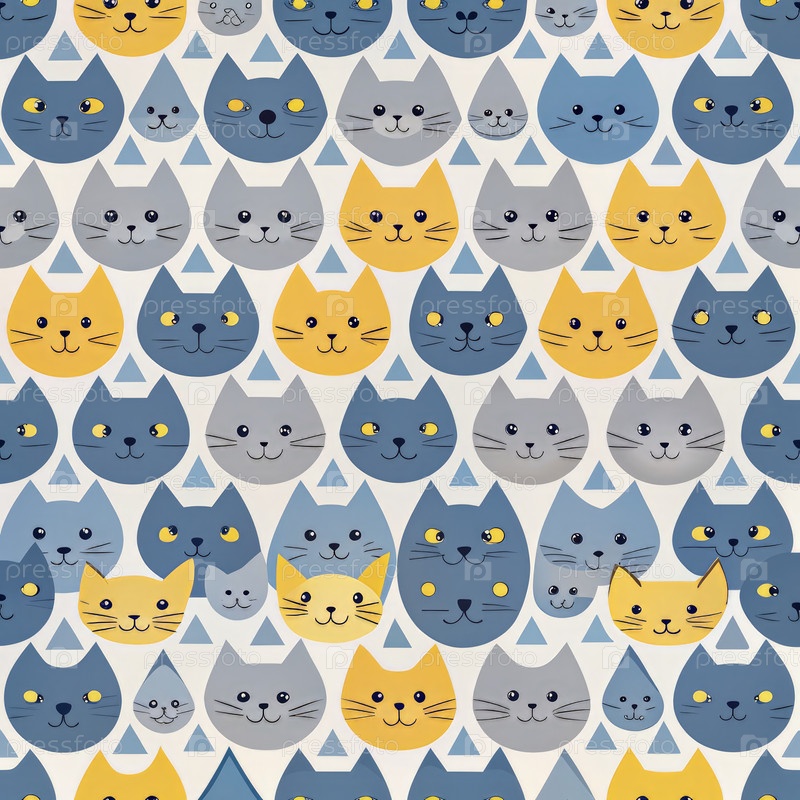 Улыбающиеся кошачьи лица в образе на белом фоне