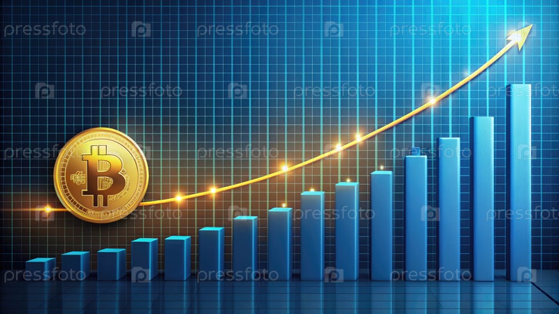 Восходящая тенденция стоимости криптовалюты, обозначенная панельным графиком и восходящей линией