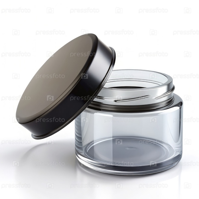 Прозрачная стеклянная банка с черной крышкой Мокет косметической упаковки
