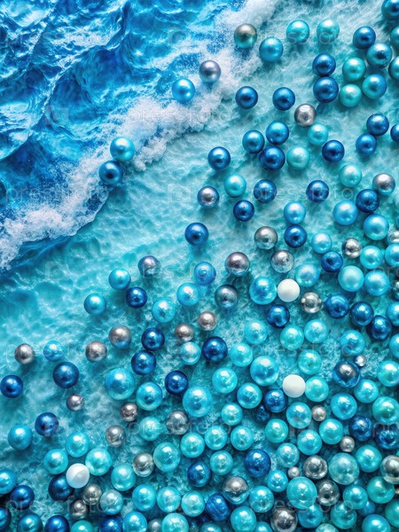 Синие и белые жемчужины, разбросанные по симулированной поверхности океана