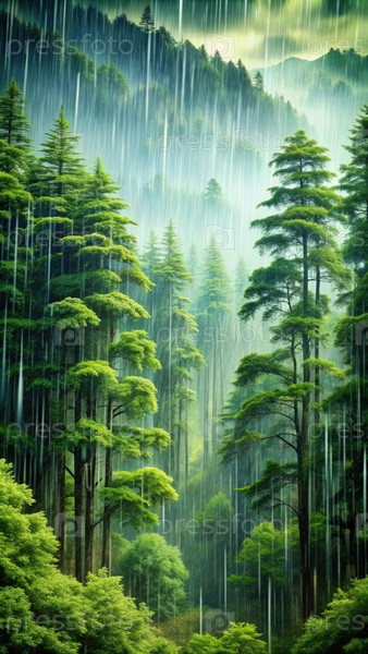 Густой зеленый лес, купающийся в сильных дождях. генеративный ИИ