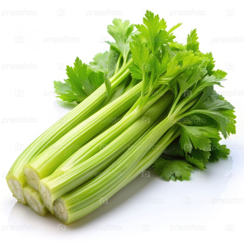 Свежие зеленые стебли сельдерея изолированы на белом фоне