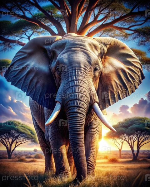 Величественный африканский слон стоит высоко в свете золотого заката