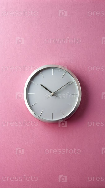 Белые часы на розовой стене