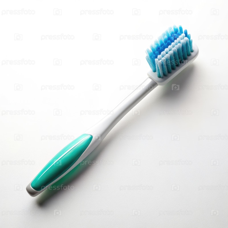 Вид сверху зелено-белой зубной щетки на белом фоне